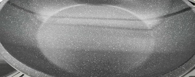 Quando exposto ao calor, ocorre um processo físico interessante: o sal torna-se um abrasivo mais ativo e literalmente “puxa” a sujidade antiga para fora dos poros do ferro fundido ou do metal. Verá que a sujidade muda de cor, tornando-se mais escura – um sinal claro de que o método está a funcionar.