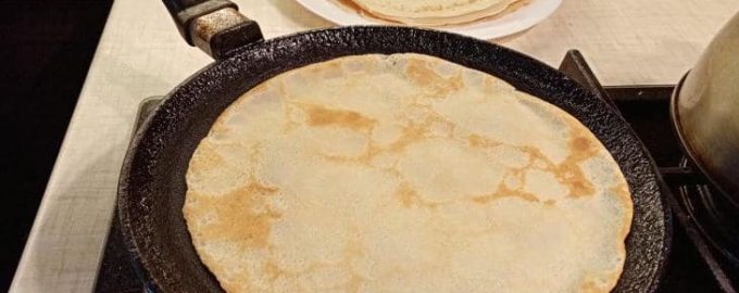 O segredo das panquecas finas e macias, com buracos abertos, muitas vezes não está na habilidade, mas em pôr a tigela de lado e cuidar dos seus próprios assuntos. Meia hora de descanso faz maravilhas à massa.